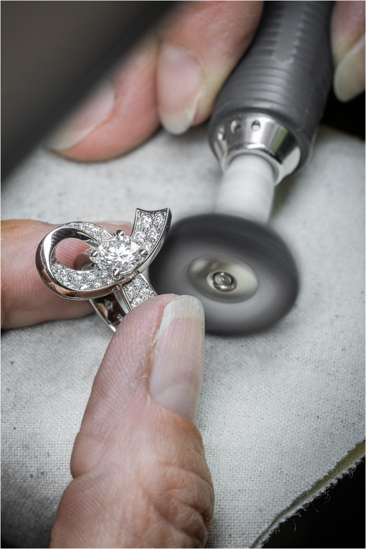 Los diamantes para el Boucle Solitaire deben tener una especificación muy precisa que debe cumplir con el estándar de la Maison. Estos estándares significan que solo las piedras que cumplen con los criterios encajan en las colecciones de solitarios y alianzas.