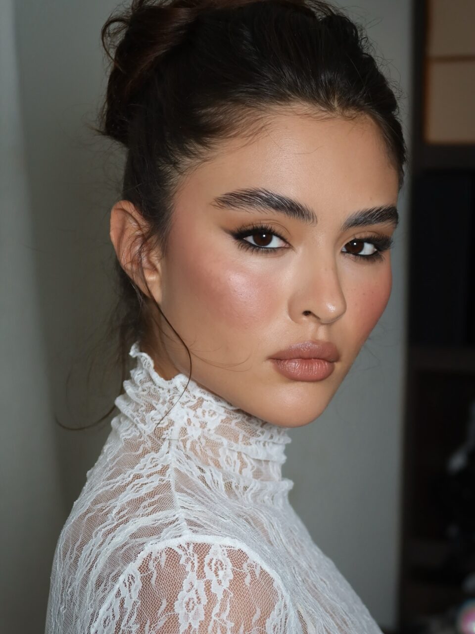 “Creo que las novias me buscan por cómo trabajo la piel”, confiesa. Su objetivo es lograr un acabado impecable sin que parezca falso. “Me gusta que la piel se vea real, luminosa y viva. Me encanta todo, desde lo natural hasta el soft glam, pero lo que más disfruto es ver el momento en que una mujer realmente se ve y se siente bella. Ese instante lo es todo.”